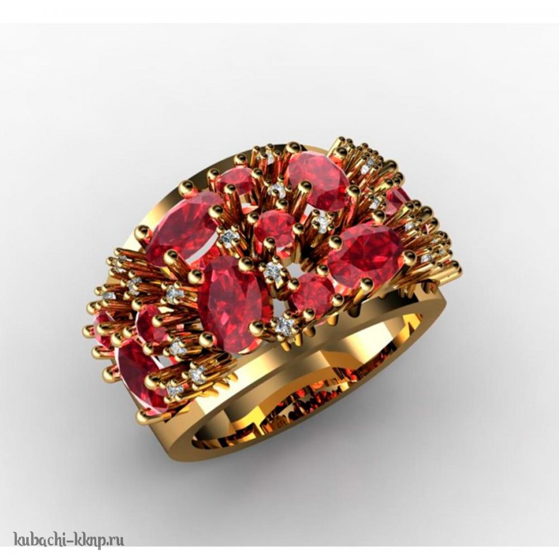 Золотое кольцо с цветными фианитами под гранат, 10010-r