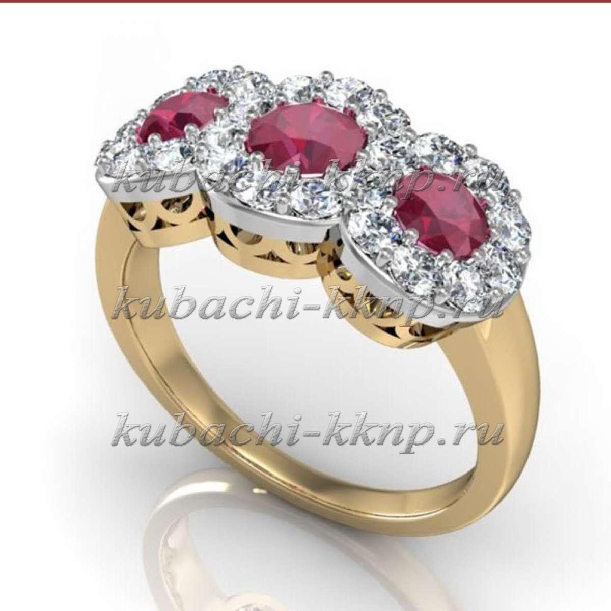 Золотое кольцо с фианитами «Вишенки» , A30905-1