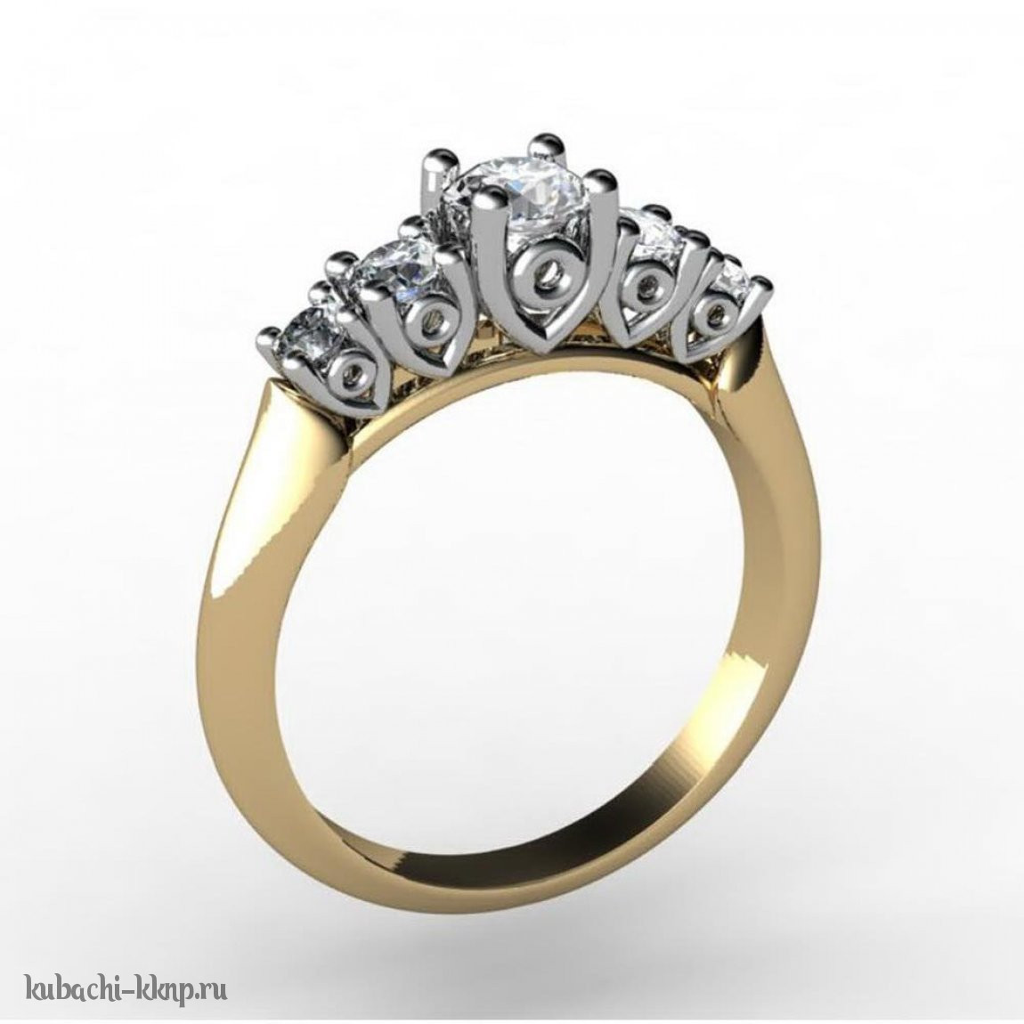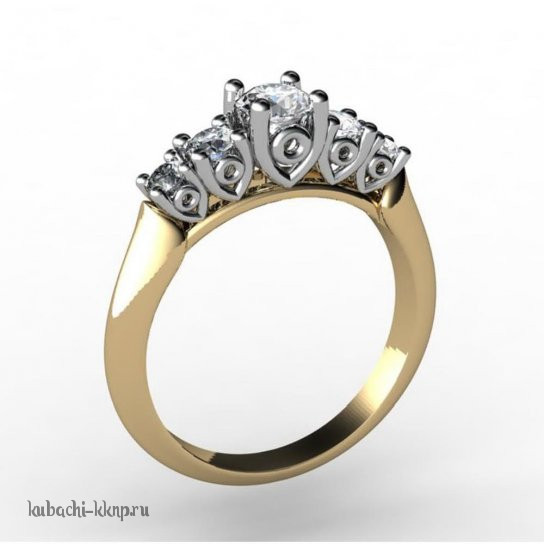 Нежное золотое кольцо с пятью фианитами, ПК-1037