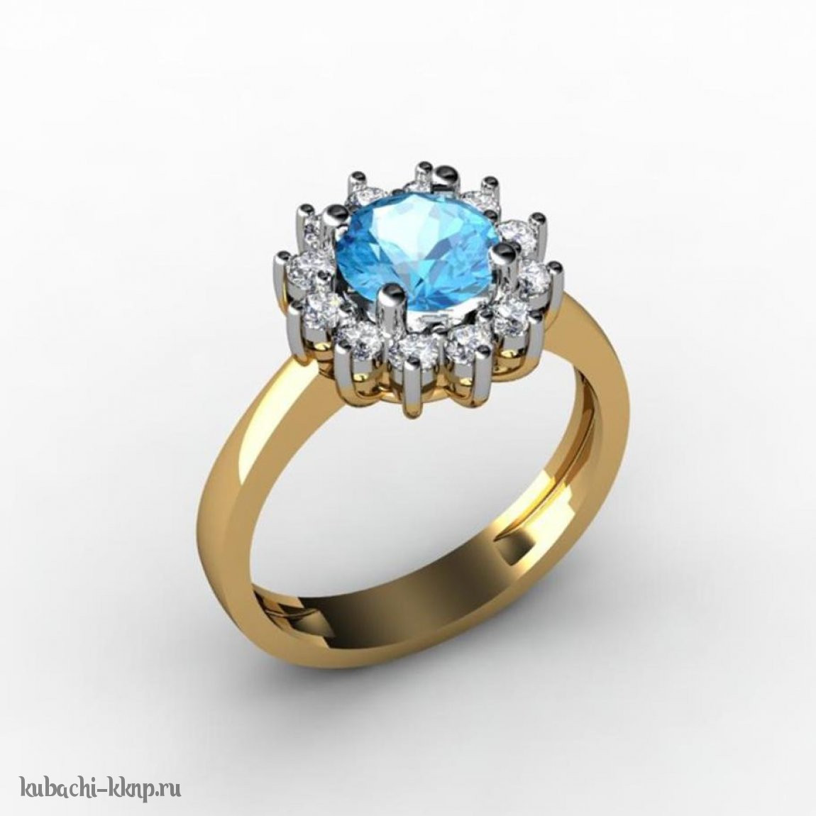 Кольцо из золото с фианитами и искусственным топазом - 00046-3r