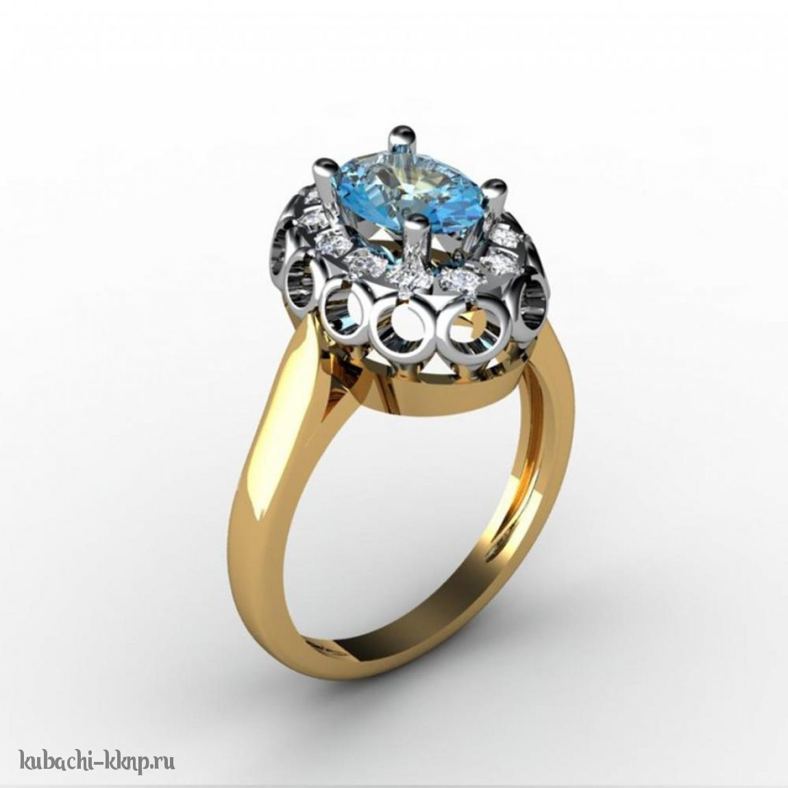 Кольцо золотое с фианитами под гранат и топаз - 00106r