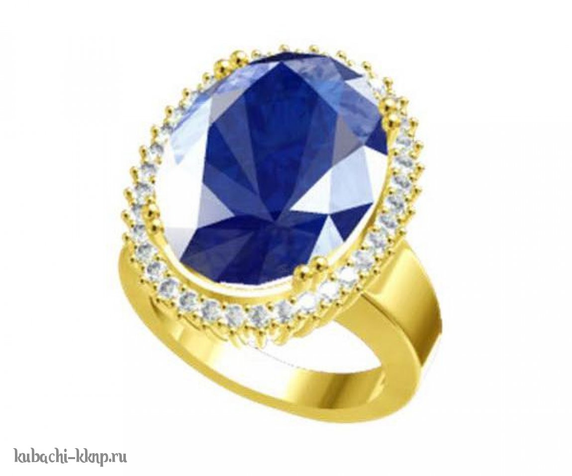 Кольцо из золота с крупным искуственным сапфиром, R28847-1