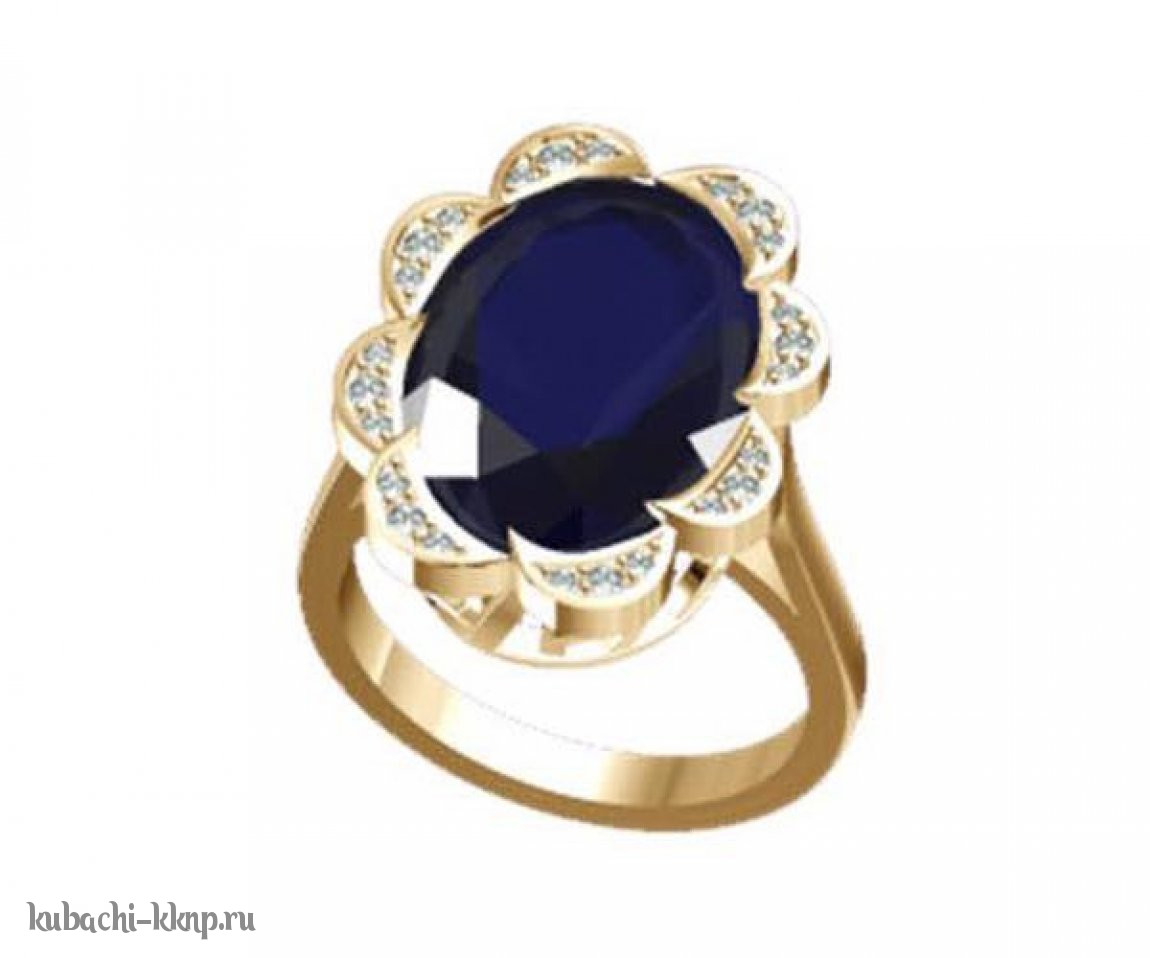Кольцо из золота с искусст. сапфиром и фианитами, R30802-1