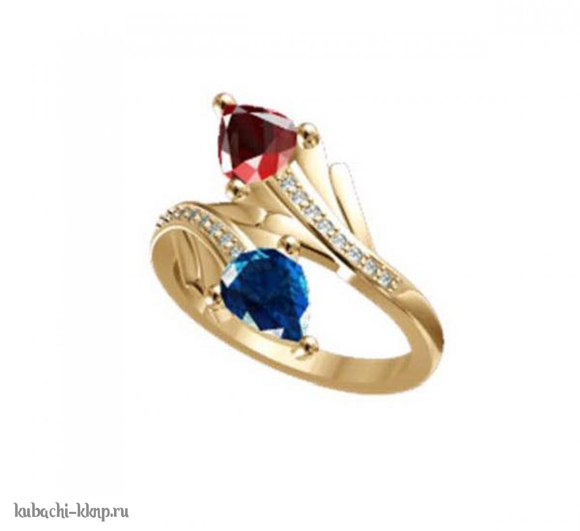 Кольцо из золота с фианитами под рубин и сапфир, R31119-1