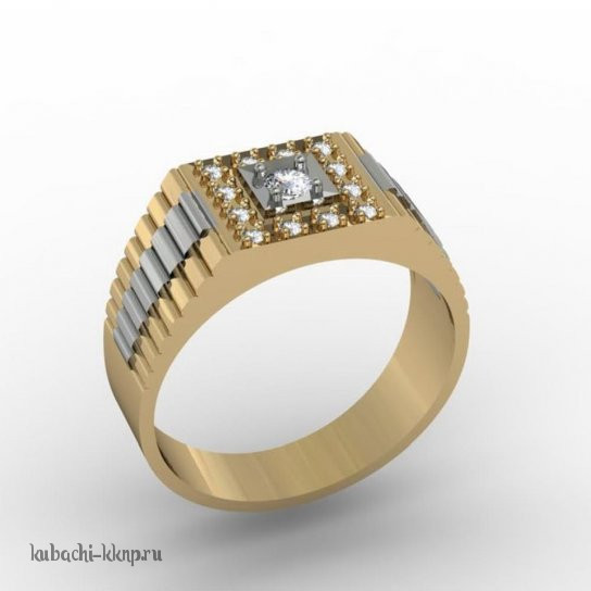 Строгое мужское золотое кольцо с фианитами, Yuv - 1227