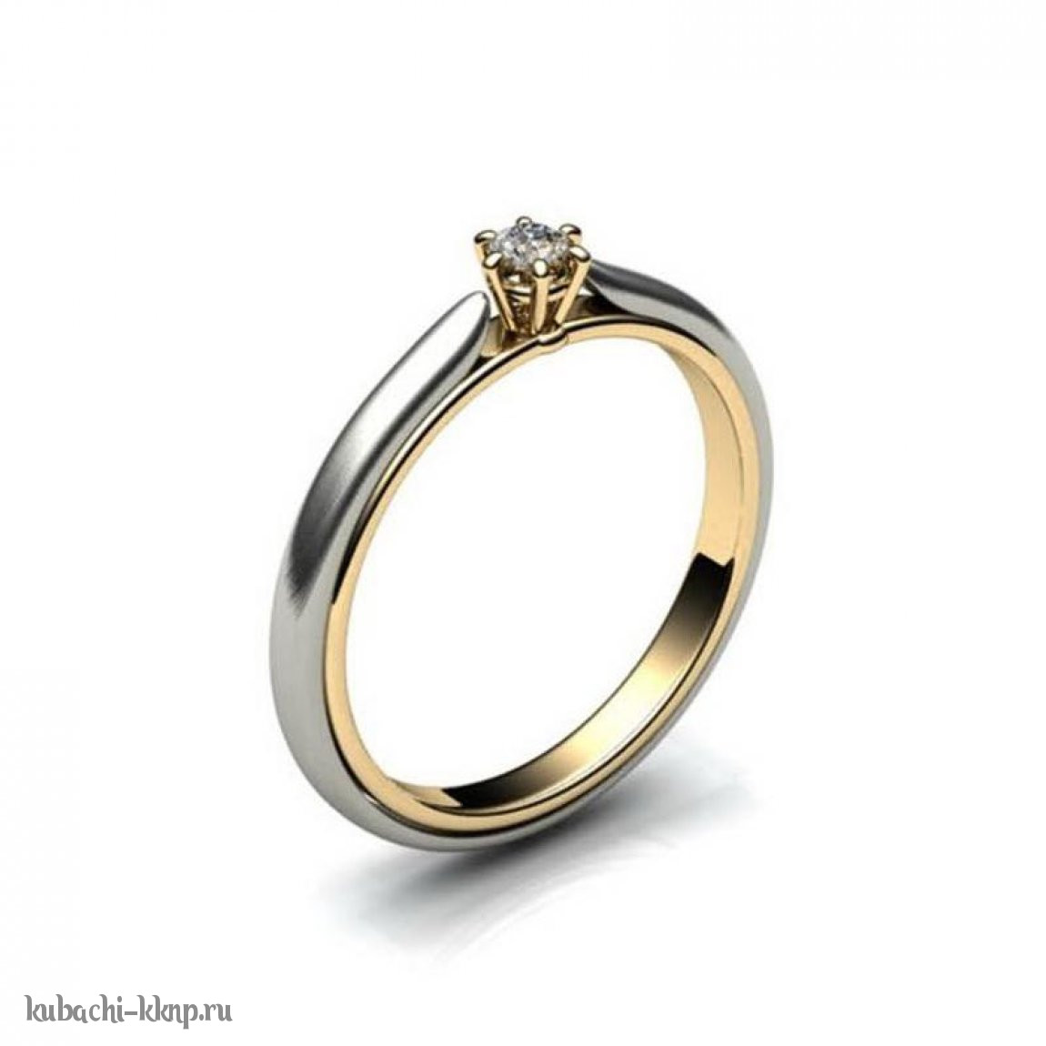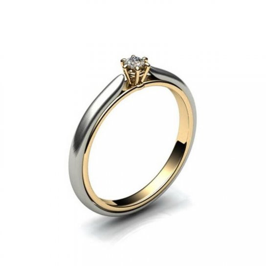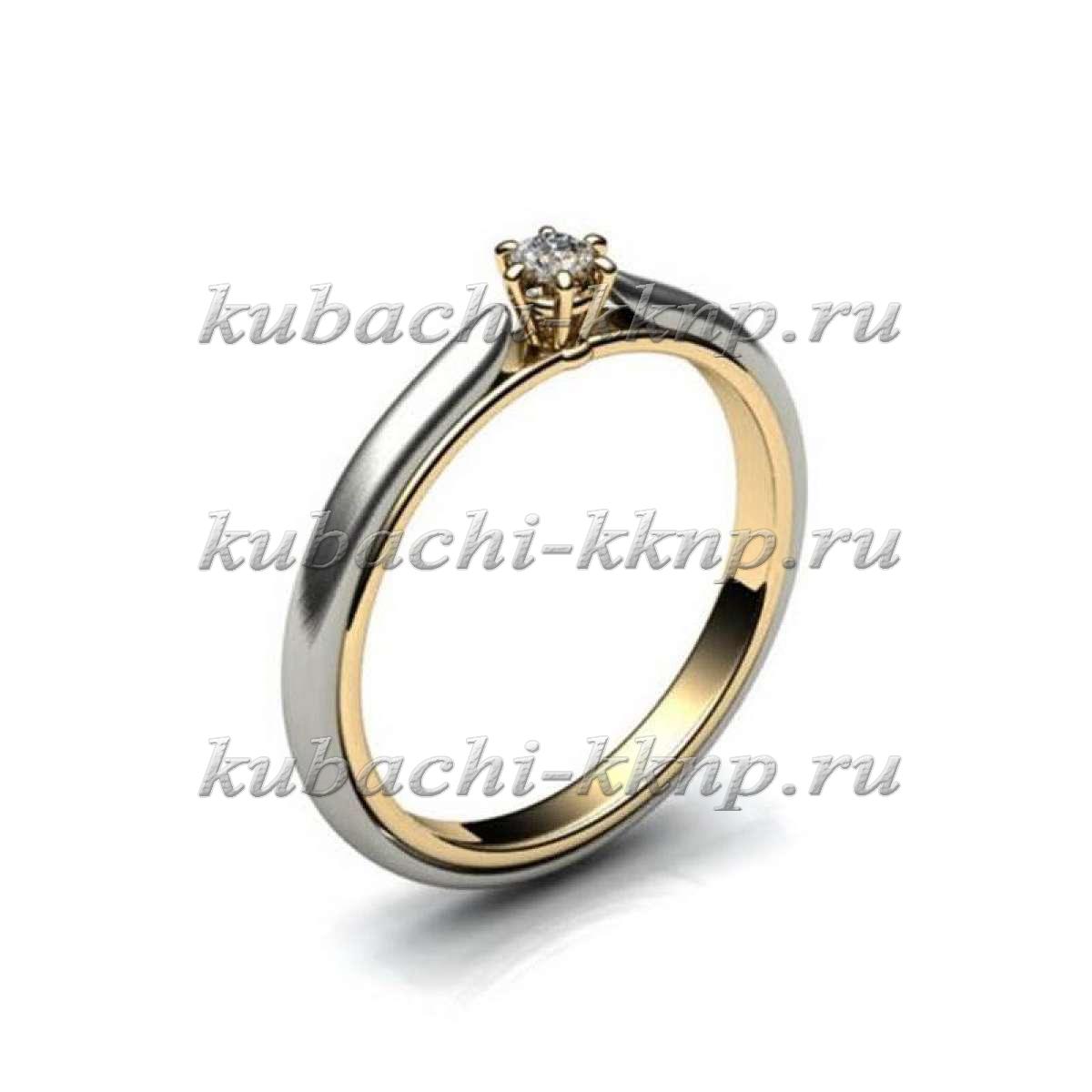 Двухцветное золотое кольцо с одним камнем, Yuv - 897