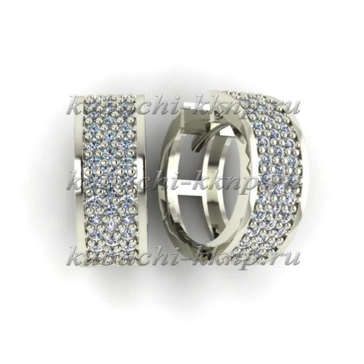 Серьги из белого золота с россыпью фианитов, 00005e
