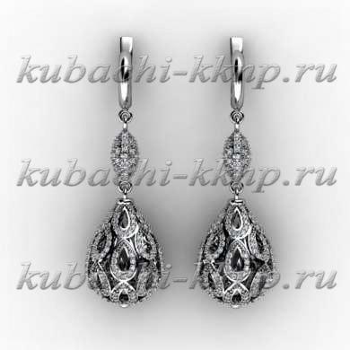 Висячие золотые серьги с мелкими фианитами, 00042e