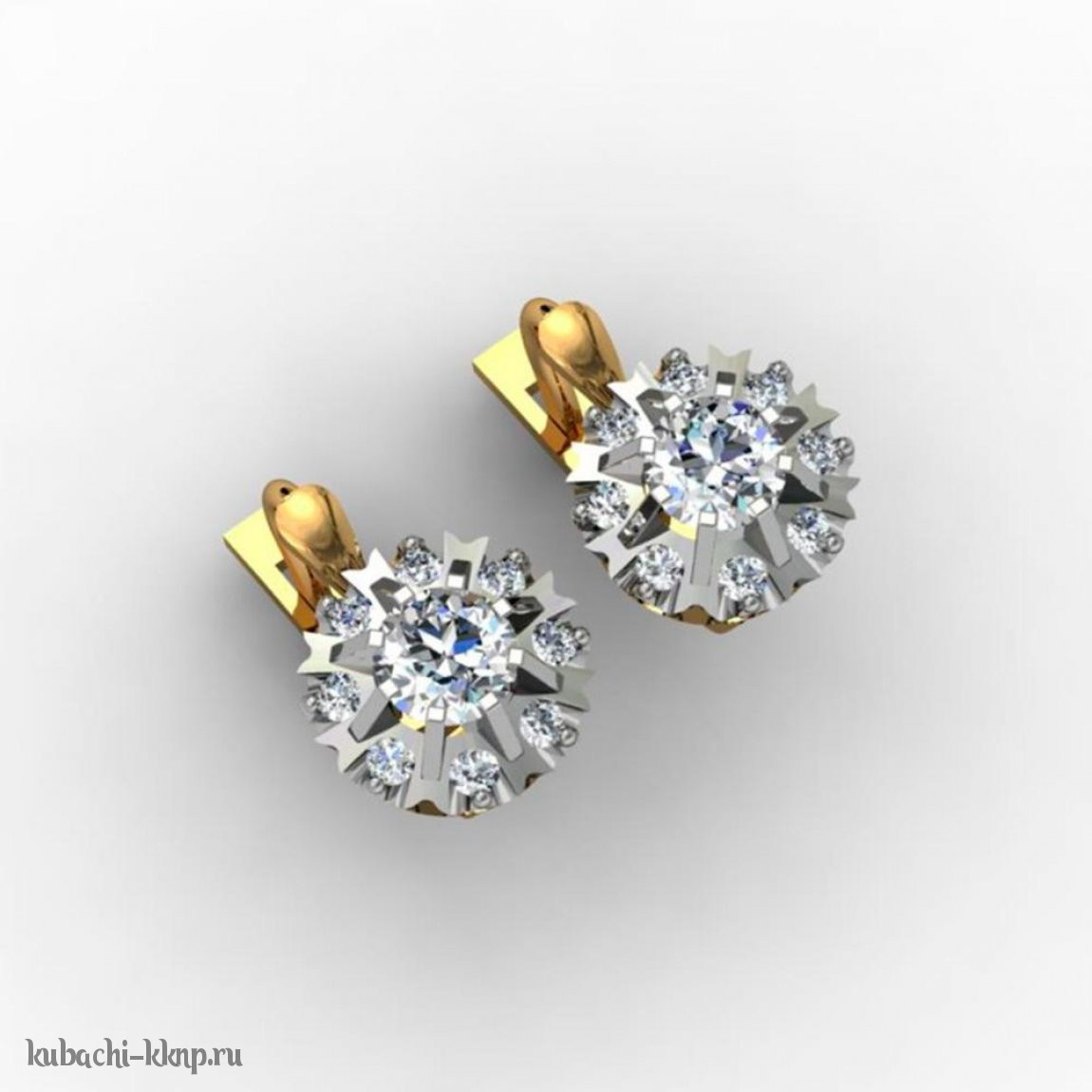 Круглые золотые серьги с фианитами - 00097e