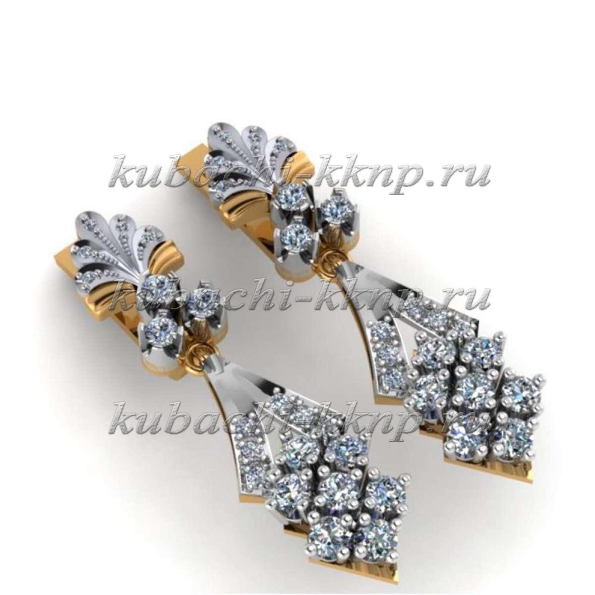 • Золотые фантазийные серьги с фианитами - e00018-A