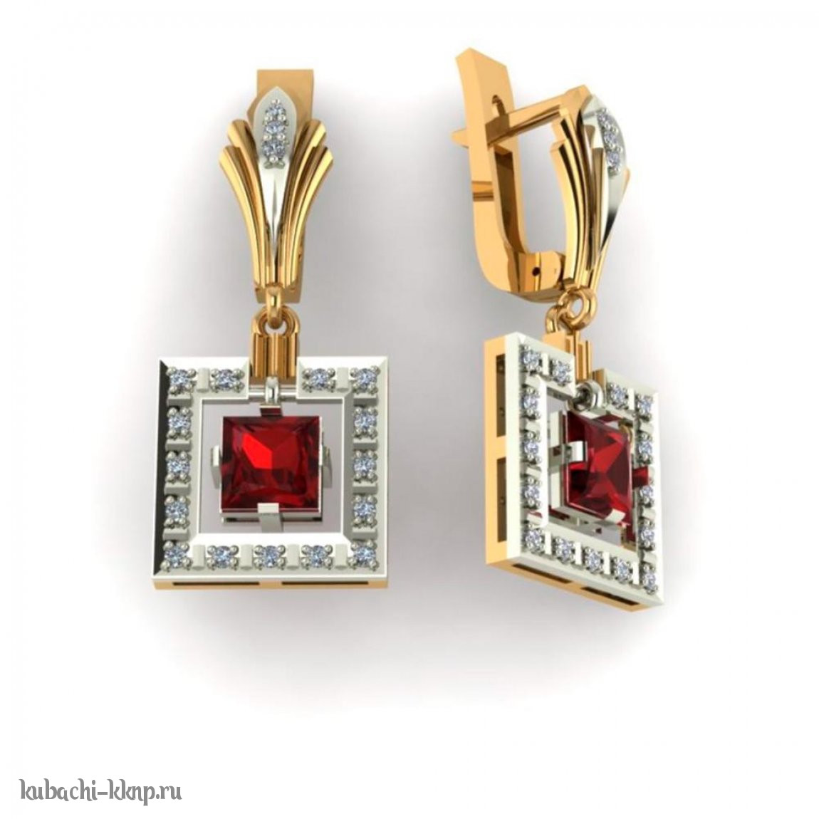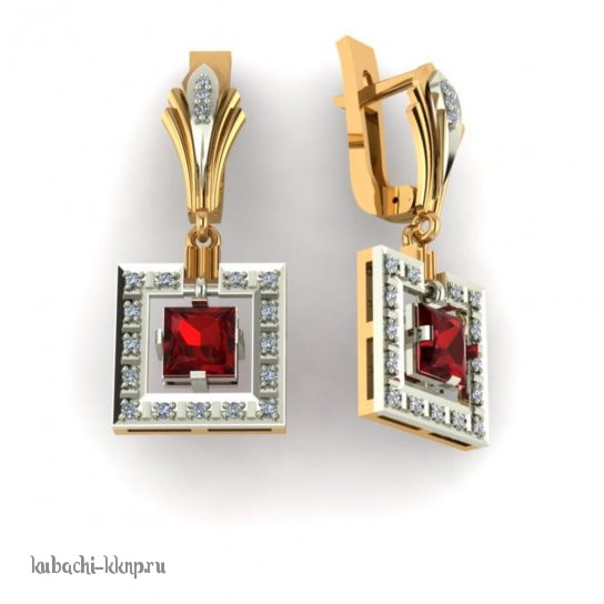 Висячие квадратные серьги с фианитами, 00081e