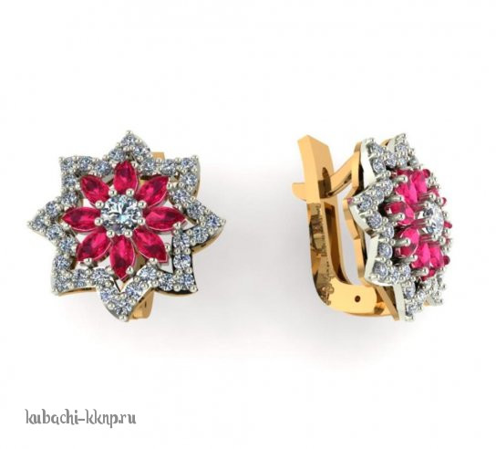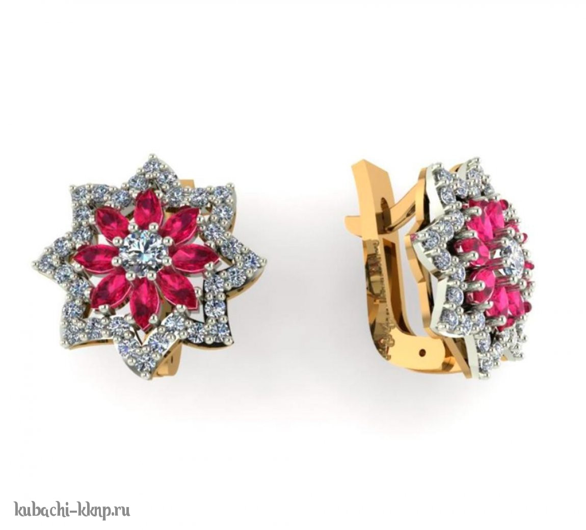 Серьги из золота с цветными камнями, 00096e
