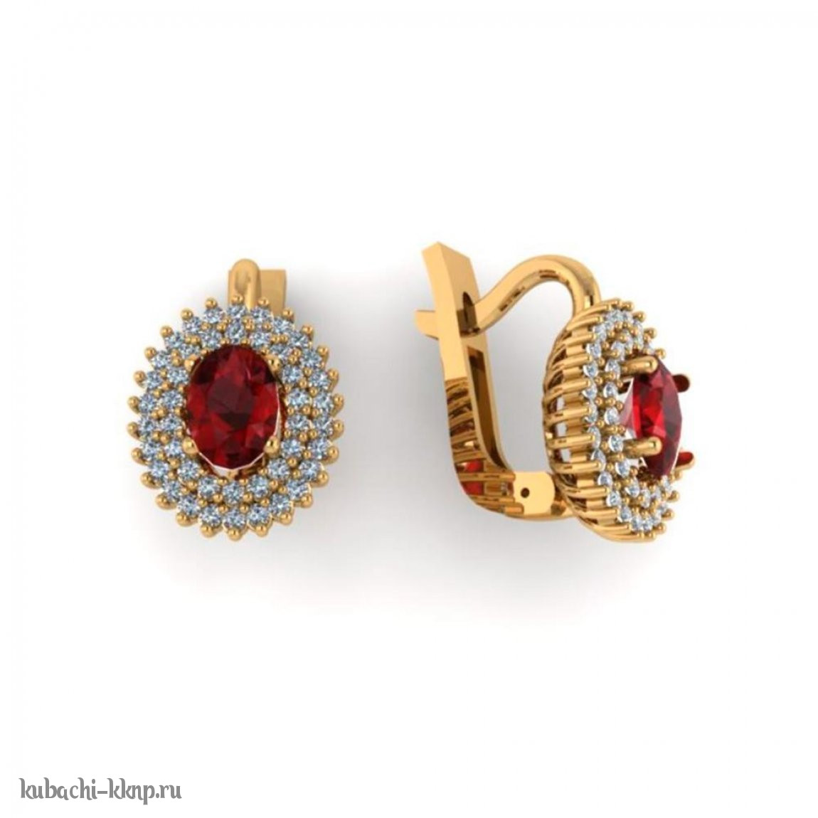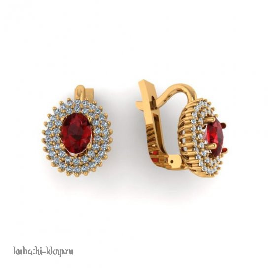 Серьги из золота с круглым искусст. гранатом - 10008e