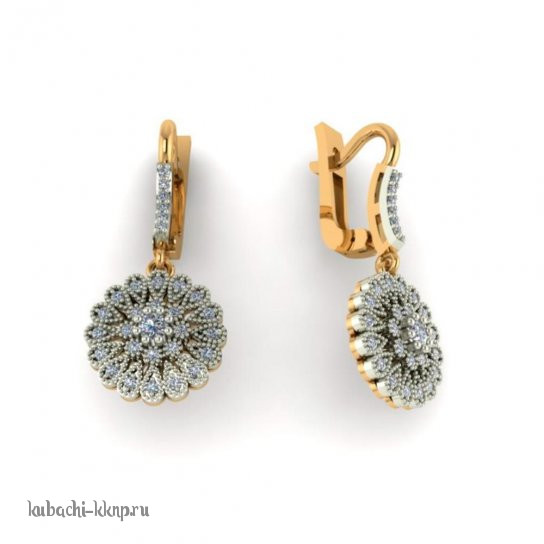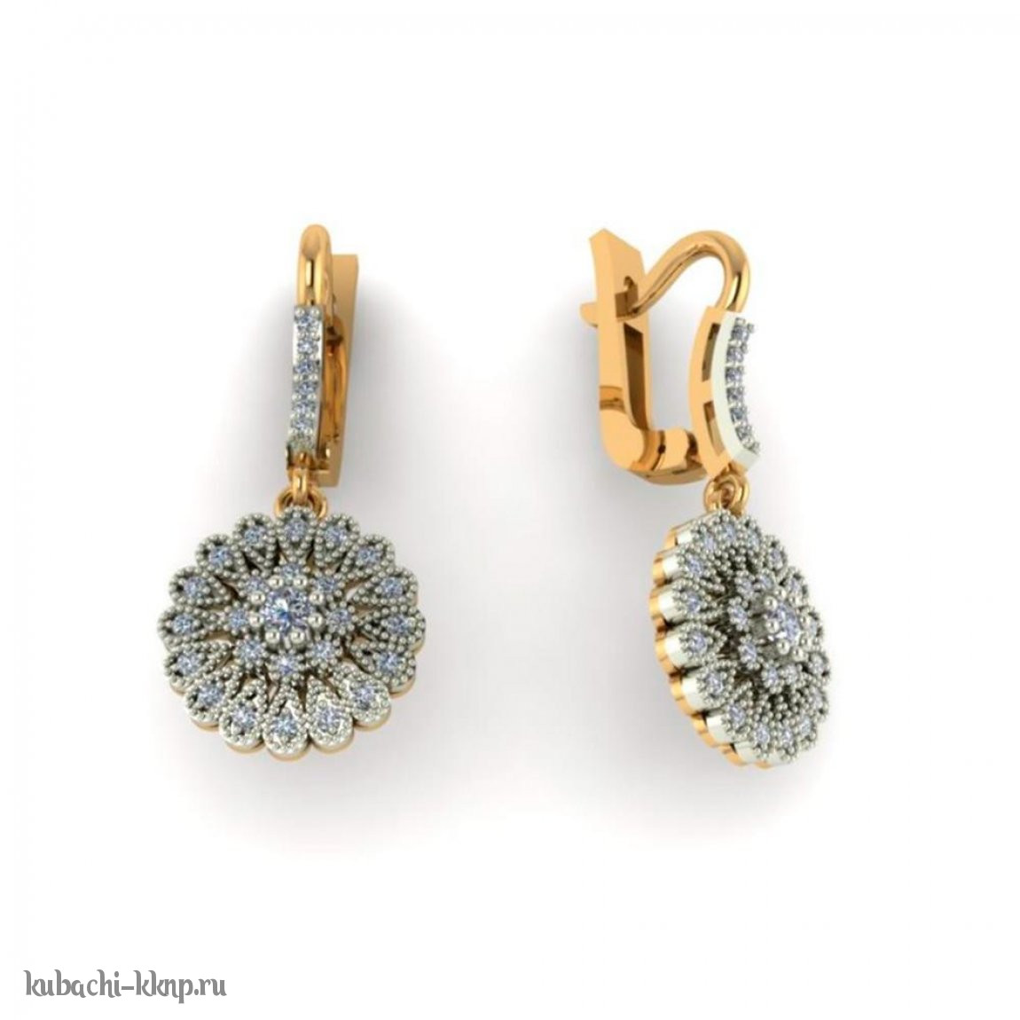 • Золотые висячие серьги с искусственным топазом - 00111e