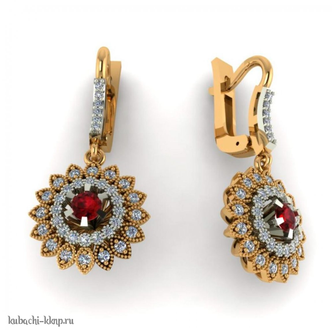 Висячие строгие золотые серьги с фианитами - 00048-4e
