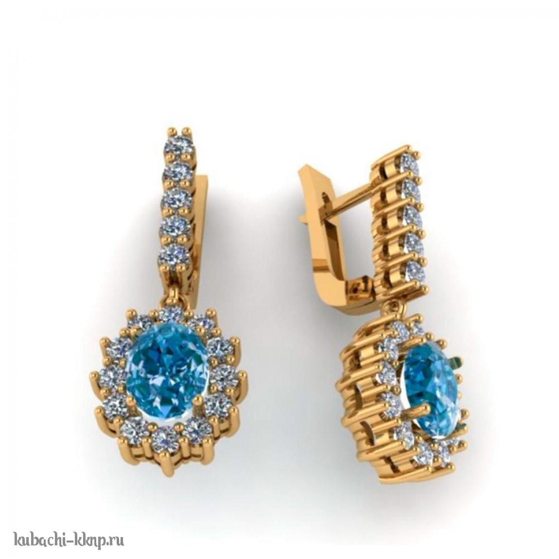 Золотые висячие серьги с искусственным топазом, 00111e