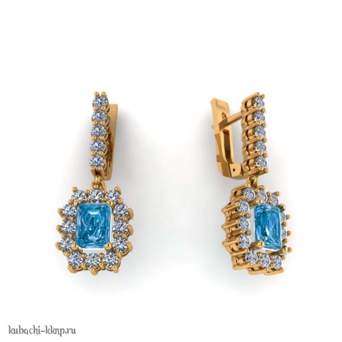 Золотые серьги с фианитами производства Кубачи - 00089e