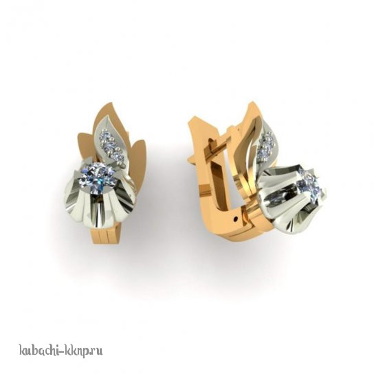 интересные золотые серьги с фианитами - 00102e