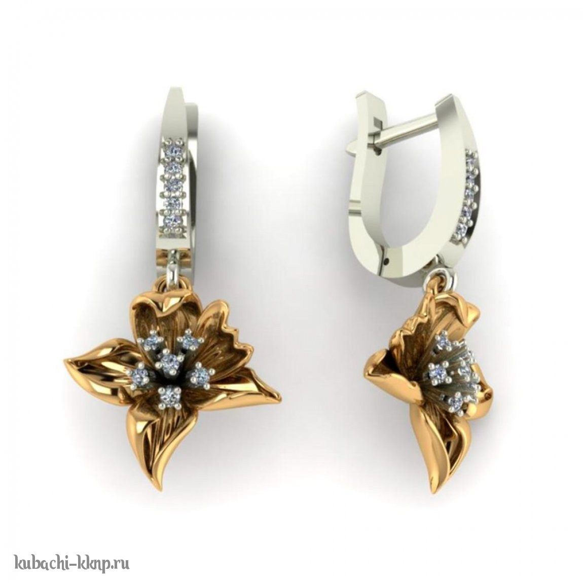 Серьги из золота 585 пробы с цветными фианитами - 00046-3e