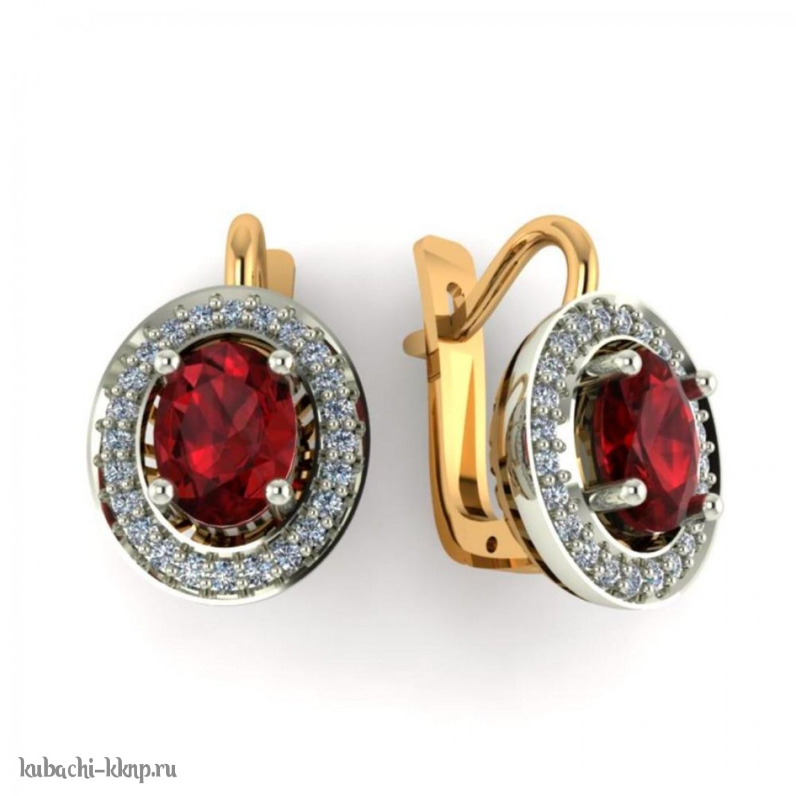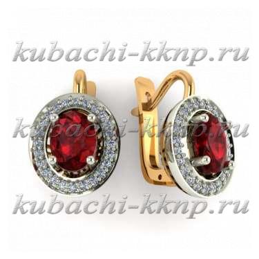 Серьги из золота с круглым искусст. гранатом, 10008e