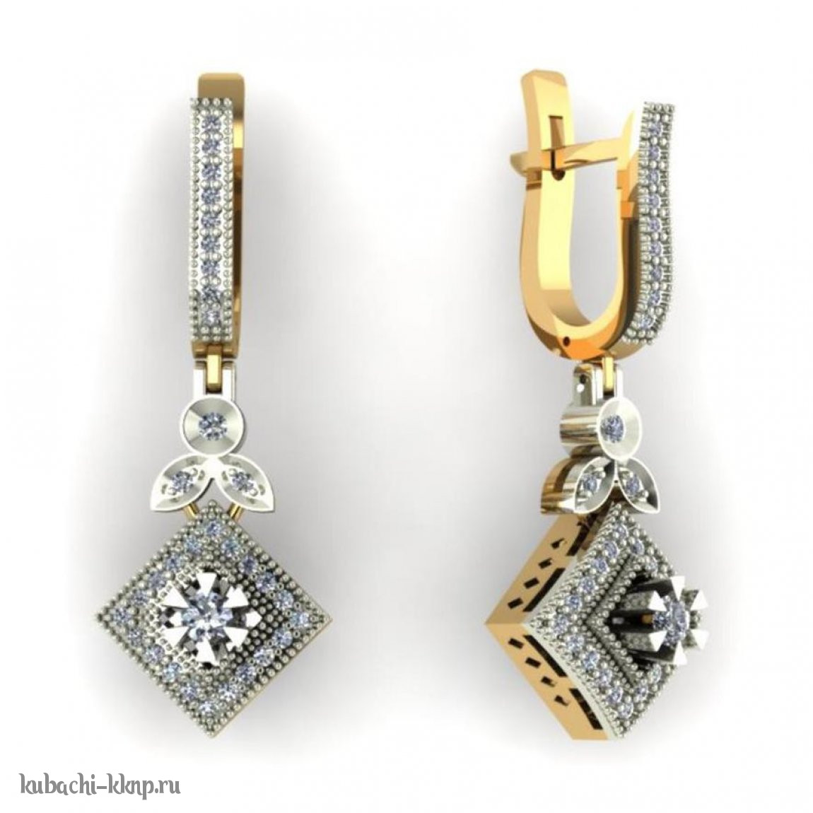Висячие квадратные серьги с фианитами - 00081e