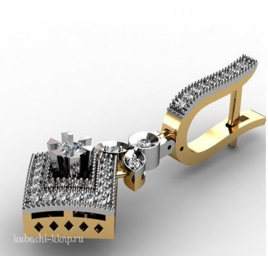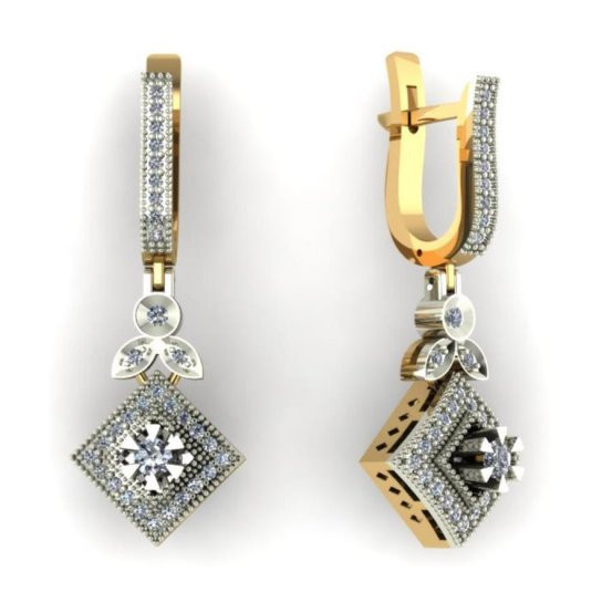 • Висячие квадратные серьги с фианитами - 00081e