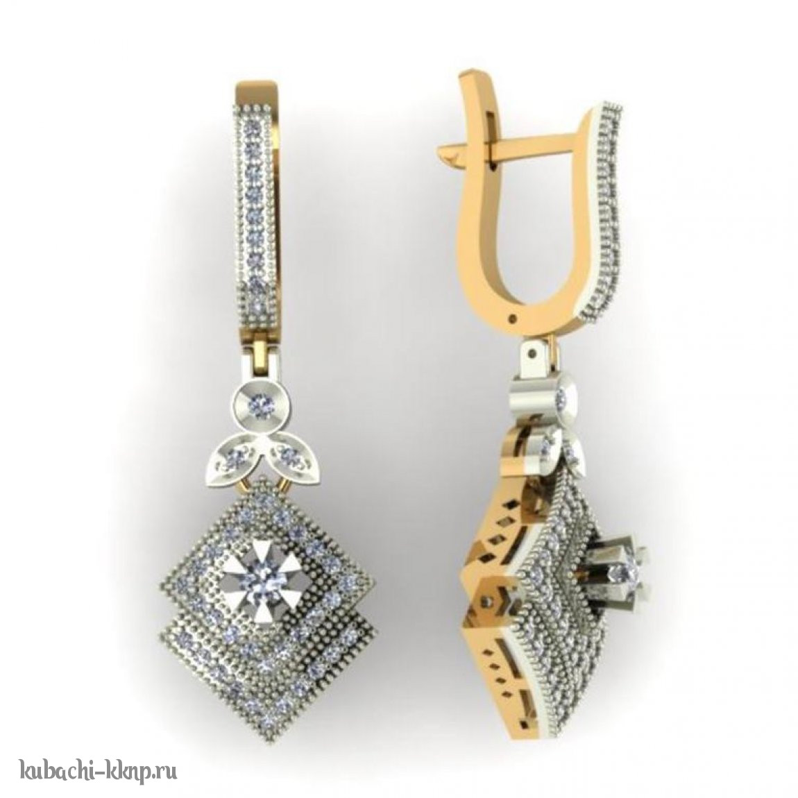 Висячие золотые серьги с фианитами - 00044e