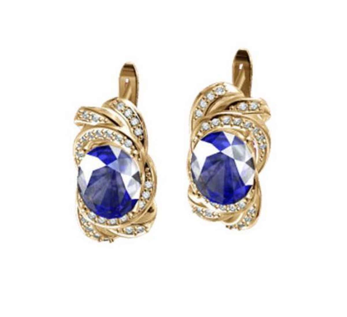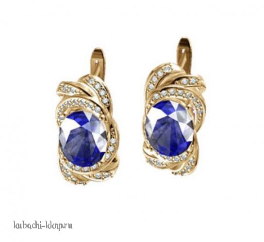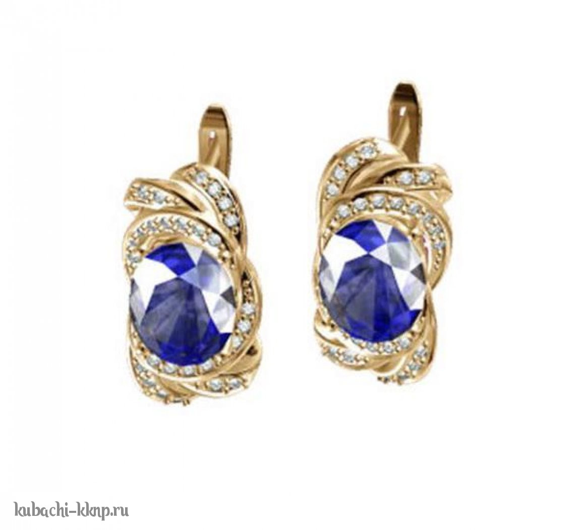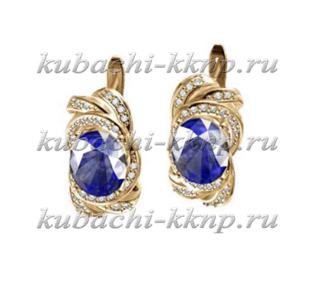 оригинальные золотые серьги с камнями под сапфир, E30775-3