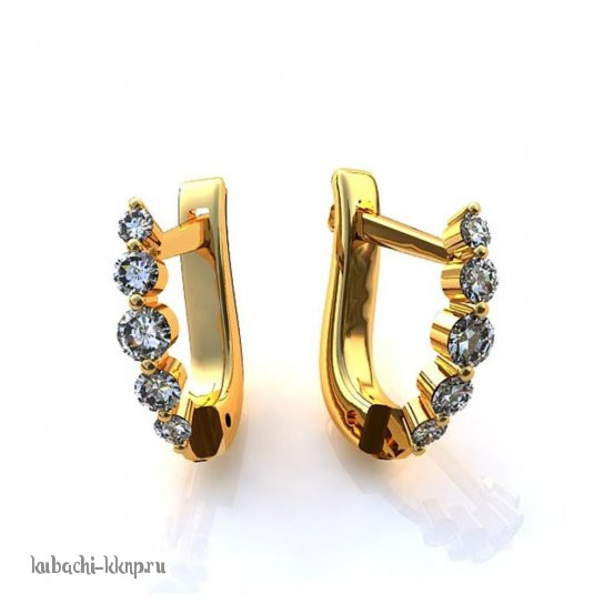 золотые серьги  с фианитами