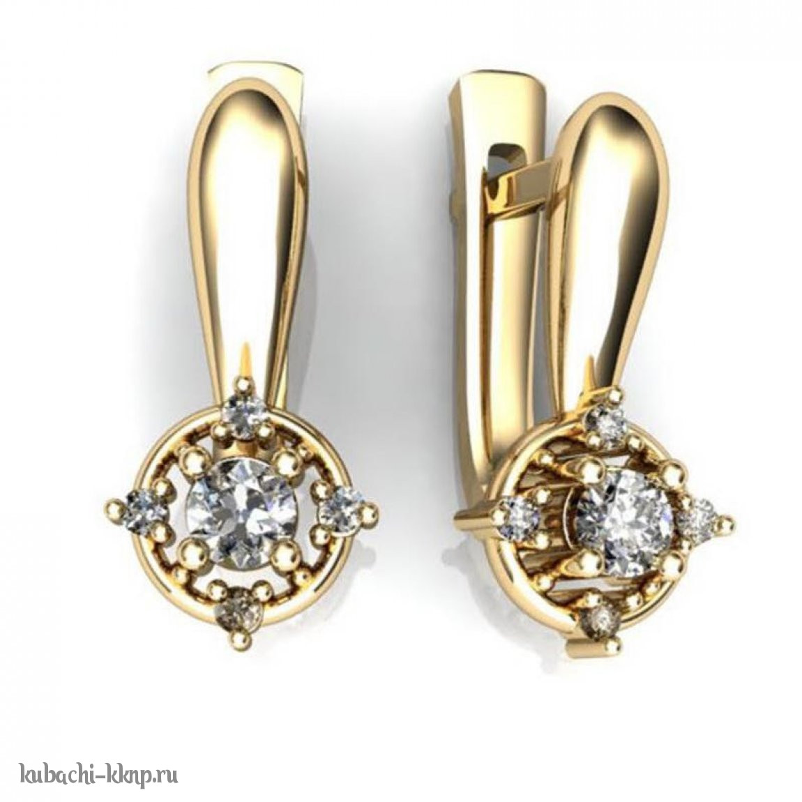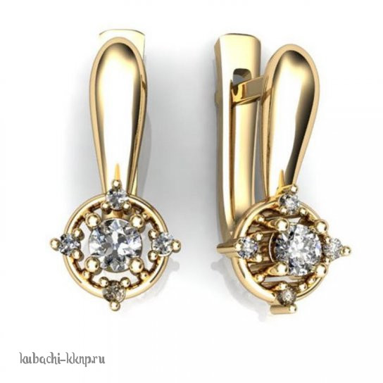 Золотые серьги с фианитами производства Кубачи - 00089e