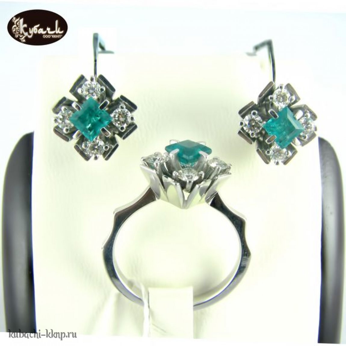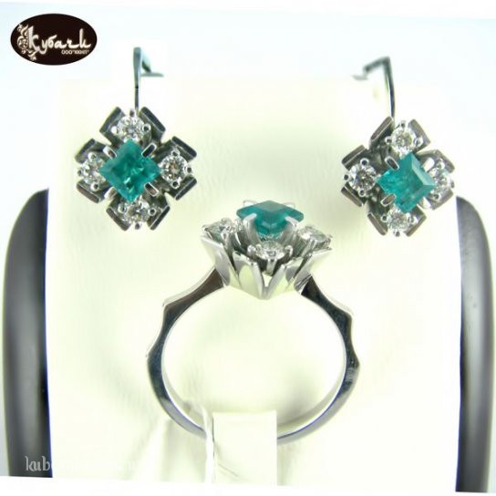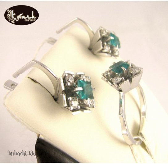Комплект «Ромбик» с изумрудами и бриллиантами., к085